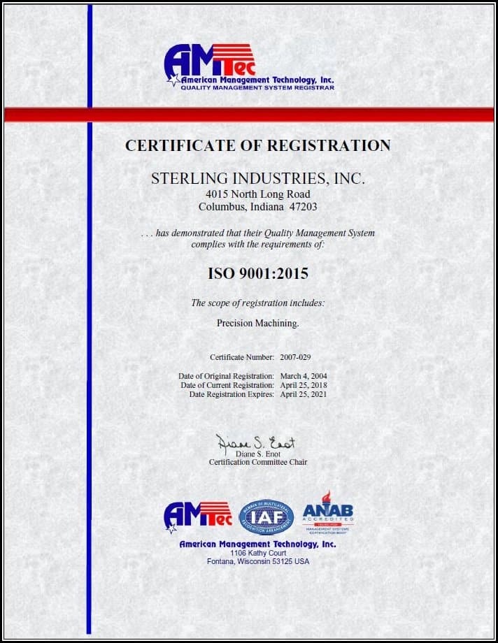 Sterling Industries is a trusted CNC machining and manufacturing company with over 70 years of heritage, based in Columbus, Indiana. We specialize in precision-machined components and assemblies for the automotive, industrial, fuel, and aftermarket sectors.